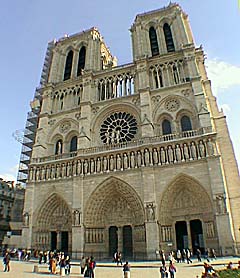 Notre Dame Cathdral, as seen from its plaza and from across the river. In a gesture of irreverence, Obbie whistled the fight song of its American name-sake.
