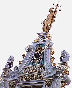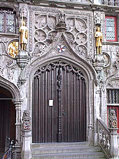 This is Renaissance Hall on Burg Square in Bruges. Below is a sample of the building's detail.